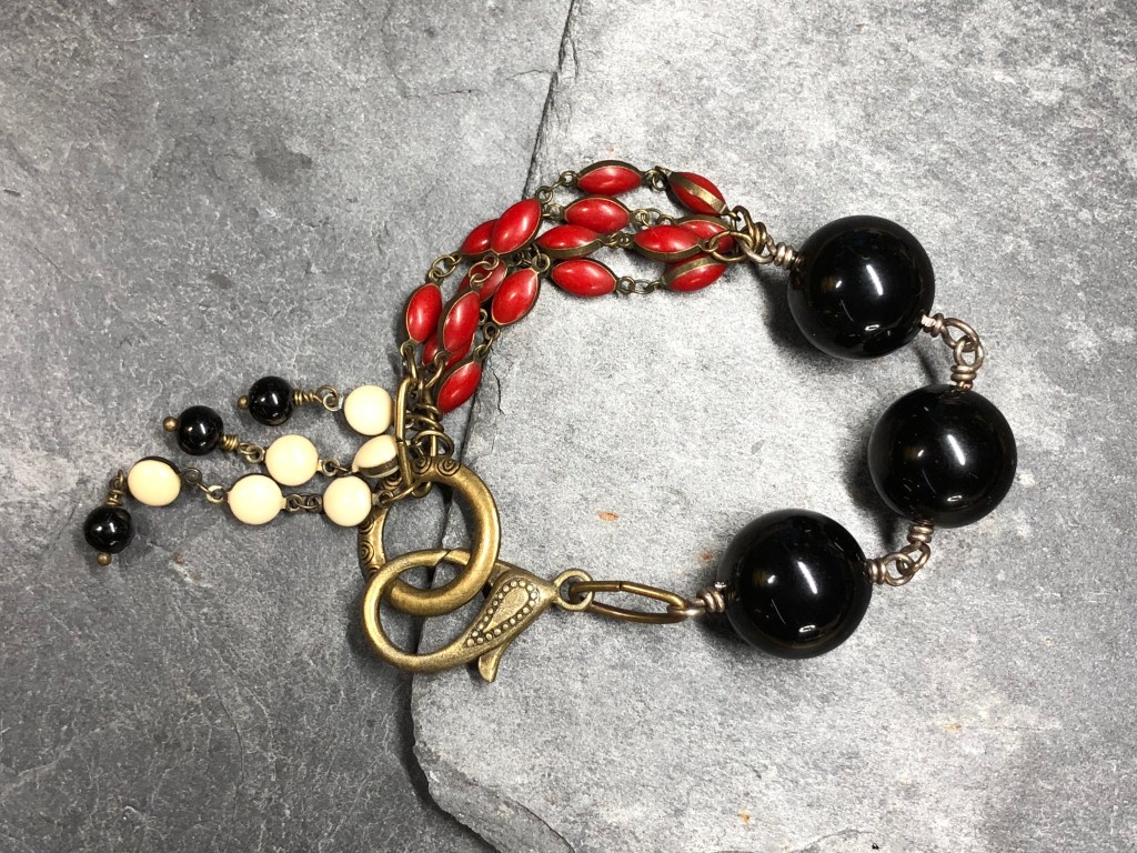 As I mentioned yesterday, while going through my stash I was almost horrified to see the amount of supplies I had. Not only beads, that would be almost reasonable, but papers, paints, markers, fabrics, yarns, threads, buttons, ribbons and what more…