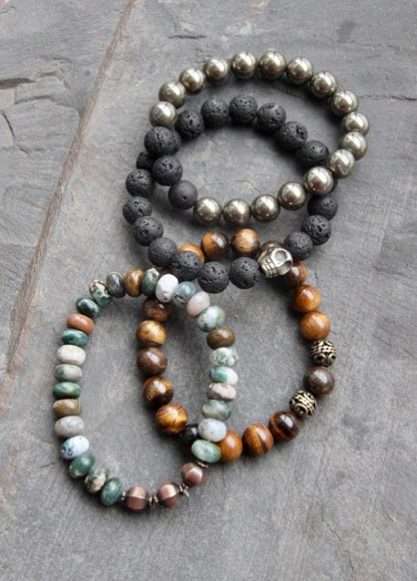 Et puis Xavier m’a demandé des bracelets masculins en pierres et métal sur fil élastique.