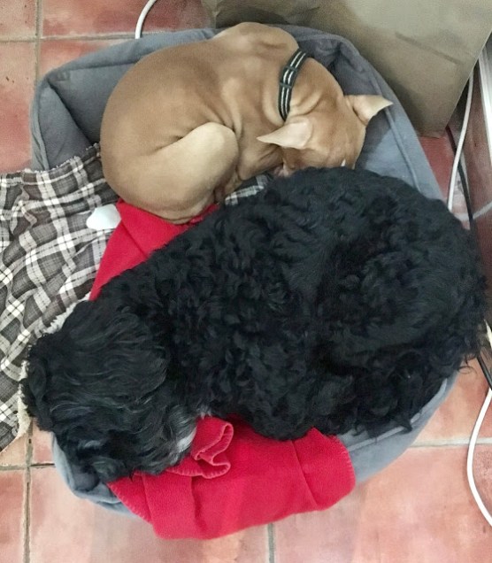 We already had taken my mother’s dog and he’s now a full member or our family and while I was walking him early in December we met a too young puppy looking for a family. I hesitated, was it really a good idea? And then, it was my birthday so why not, the kids decided without hesitating for one second.
