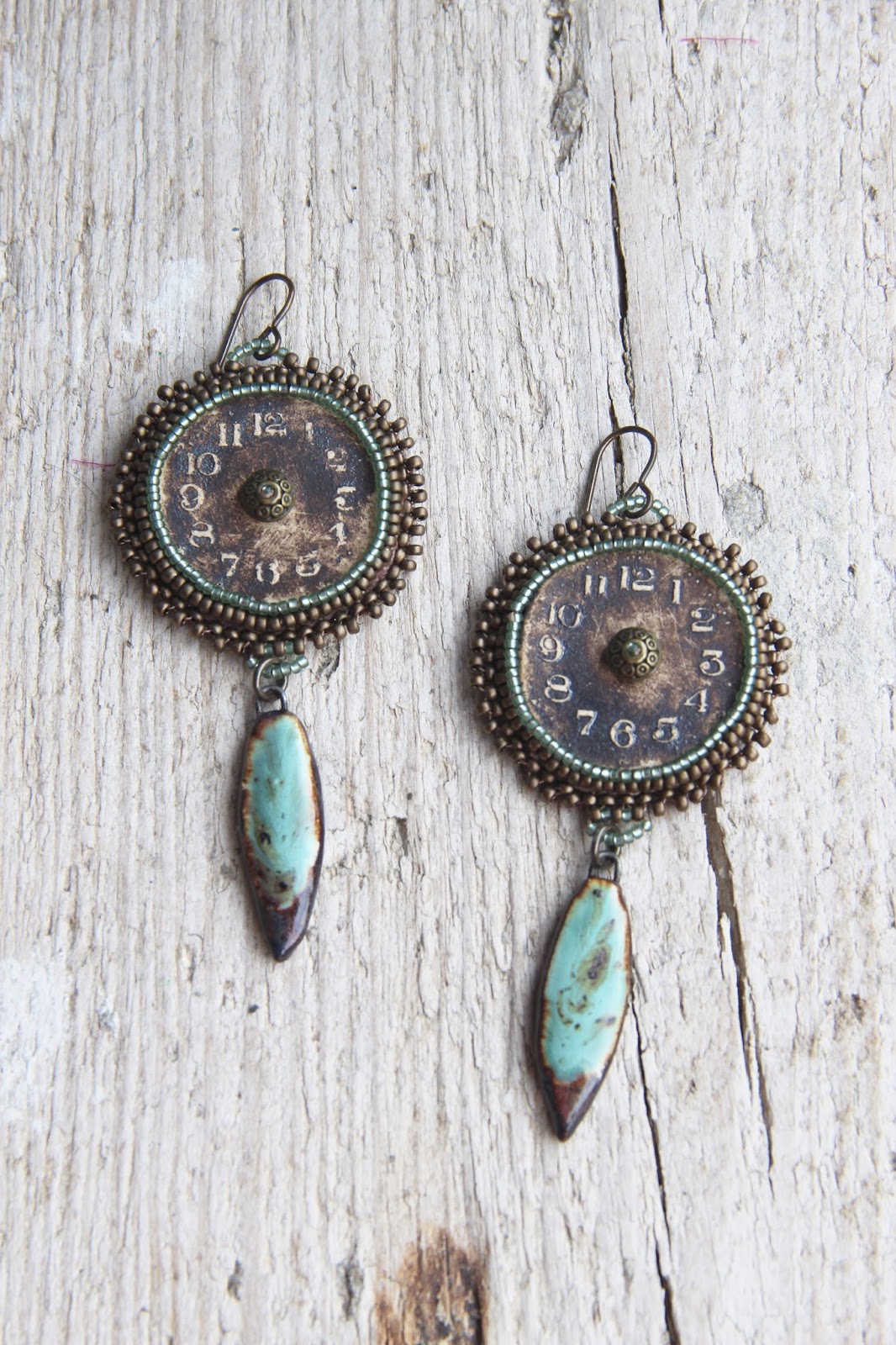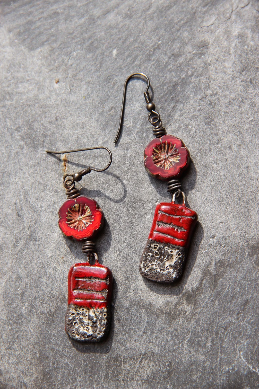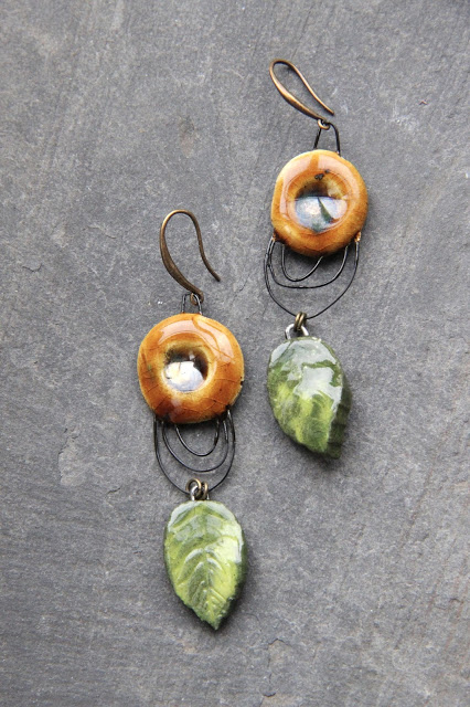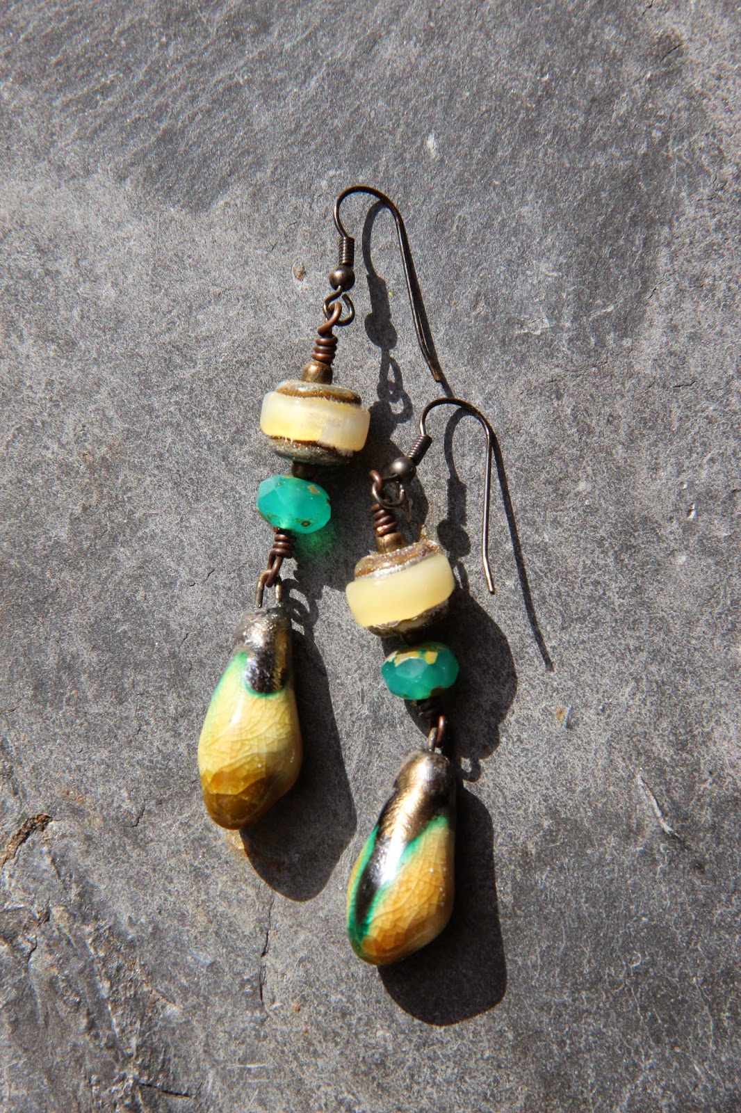 Finally, a pair of earrings with bright plastic drop beads which are most certainly part of my first orders from Etsy, over ten years ago!