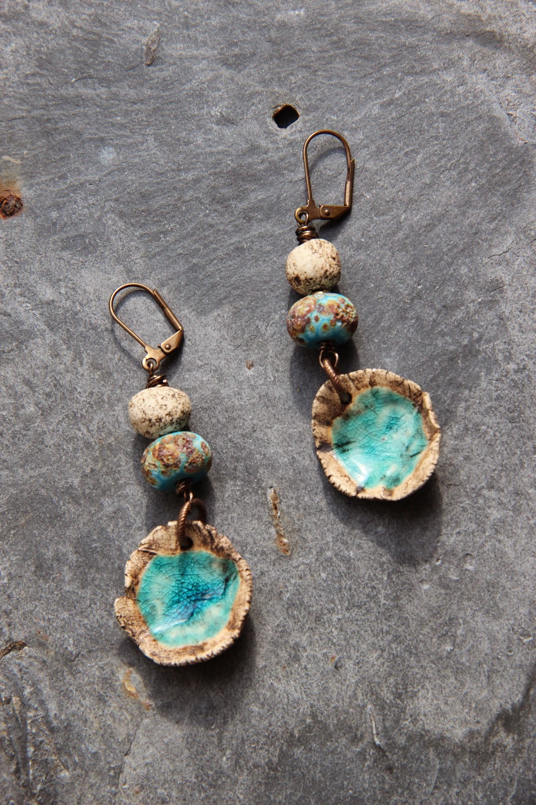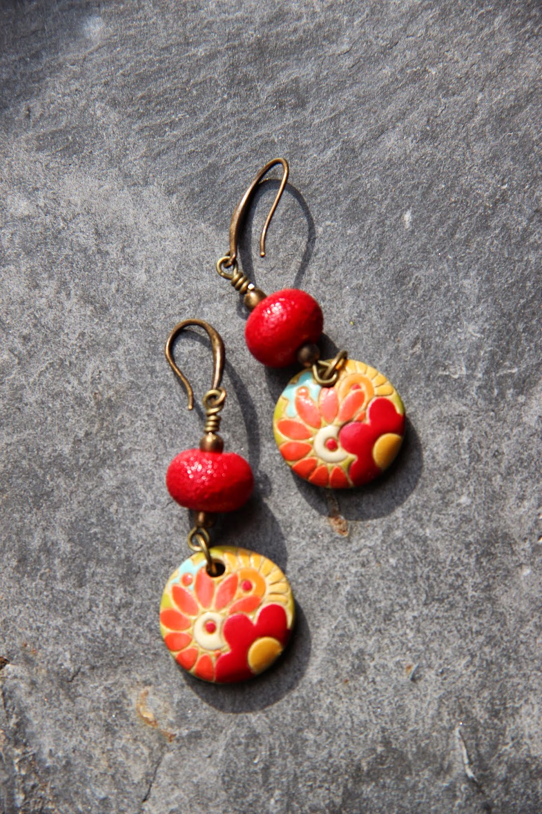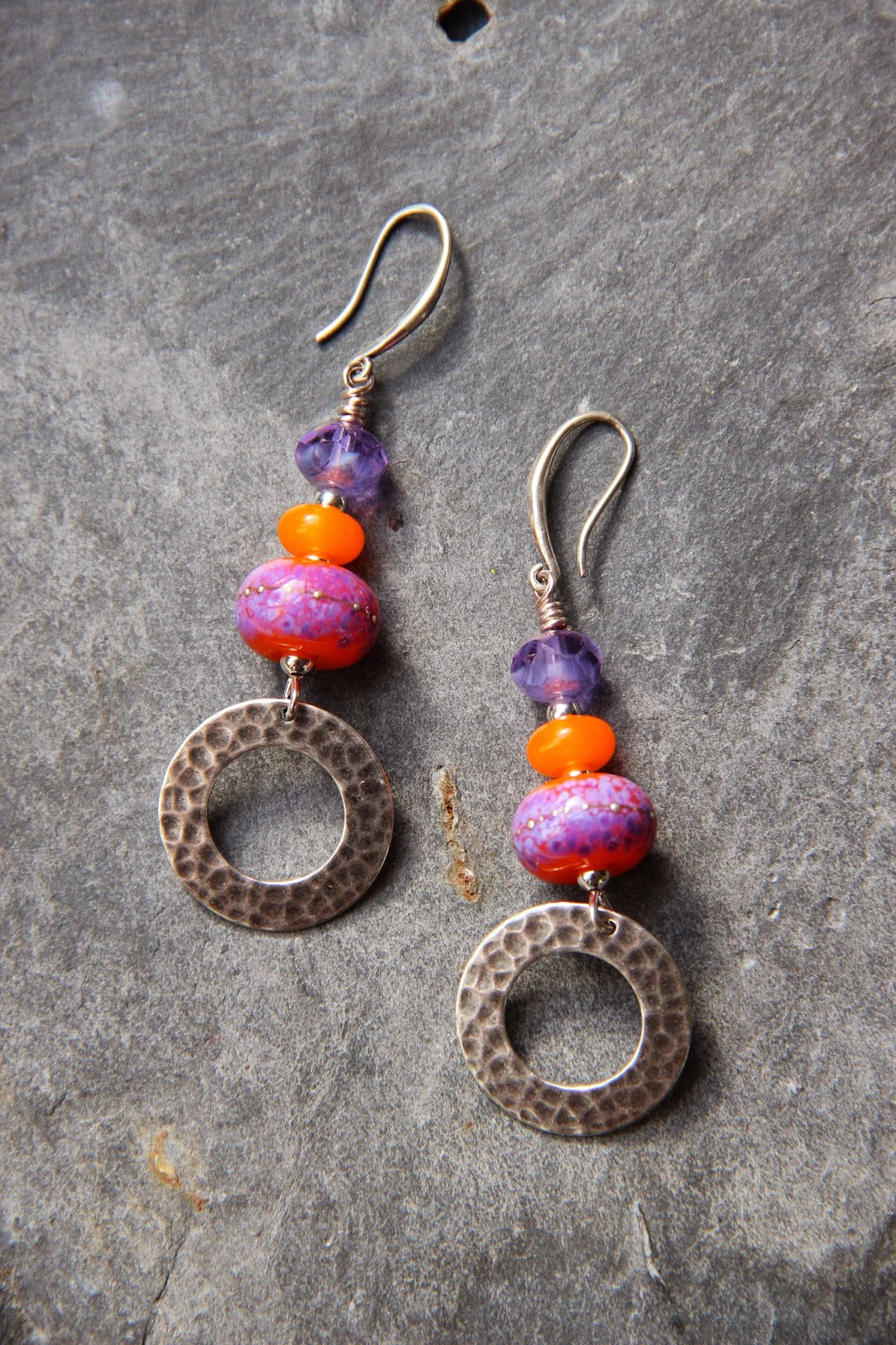 Finally, a pair of earrings with bright plastic drop beads which are most certainly part of my first orders from Etsy, over ten years ago!