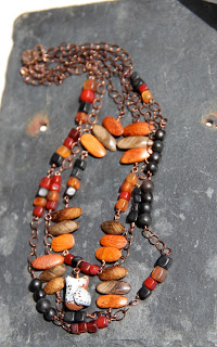 I can’t make choices, I have no preferences when it comes to materials, colors and shapes to make jewelry. I seem to be partial to orange though. But I can see some blue too…