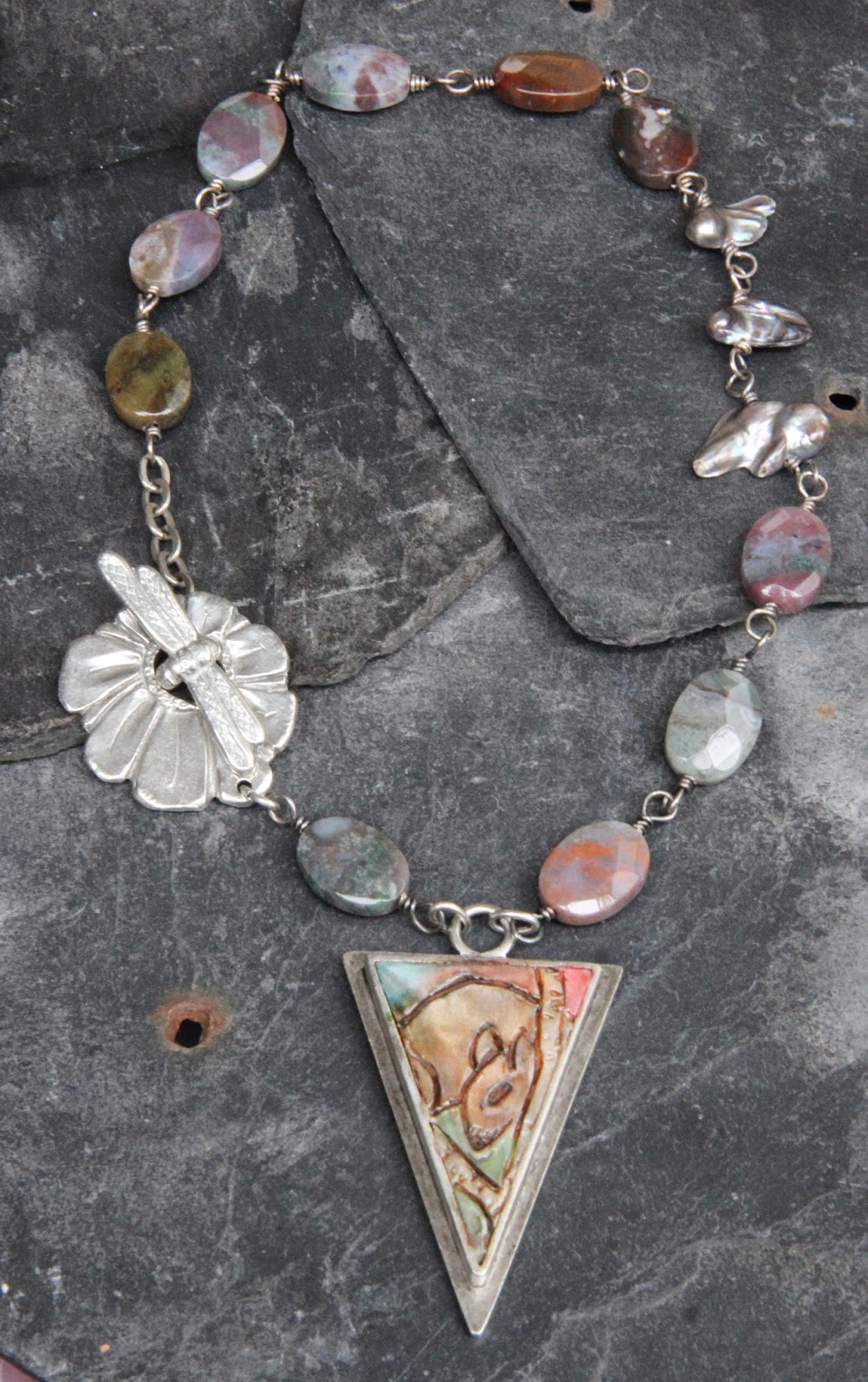 Since May, I’ve been following the monthly Art Bead Scene Challenges. I like the idea of associating a painting to a piece of jewelry.