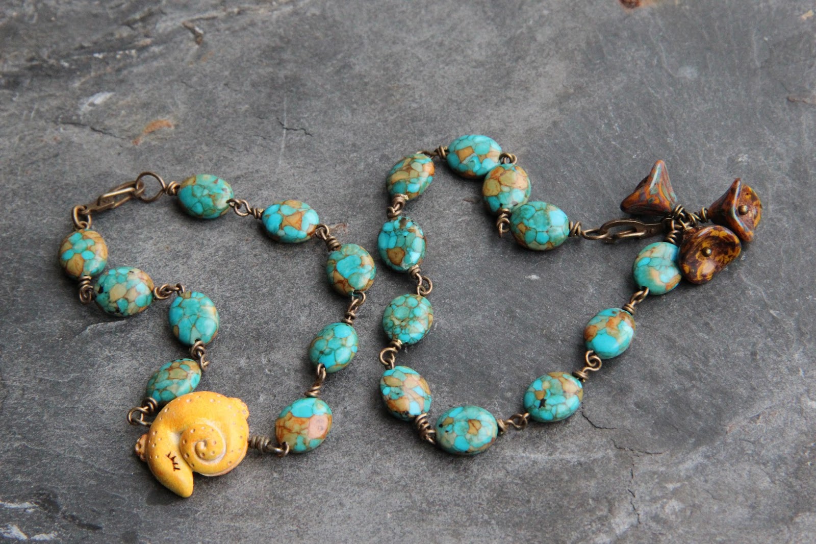 | Fermoir / Toggle clasp, Mary Harding Jewelry Perles de verre / Glass beads, Loupiac, Studio Juls, Glass Bead Art Perles en céramique / Ceramic beads, Gaea, Grubbi |